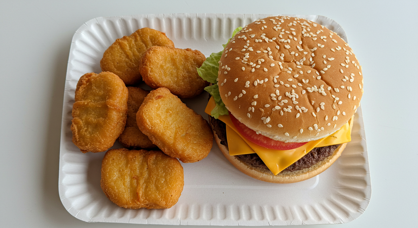 - ハンバーガー: パティはシングルを選び、揚げたチキンではなくグリルチキンを選びましょう。チーズは減らすか、なしにするのも良いでしょう。野菜を増やしてもらい、可能であれば全粒粉のバンズを選ぶか、バンズなし(プロテインスタイル)にするのも一つの手です 。